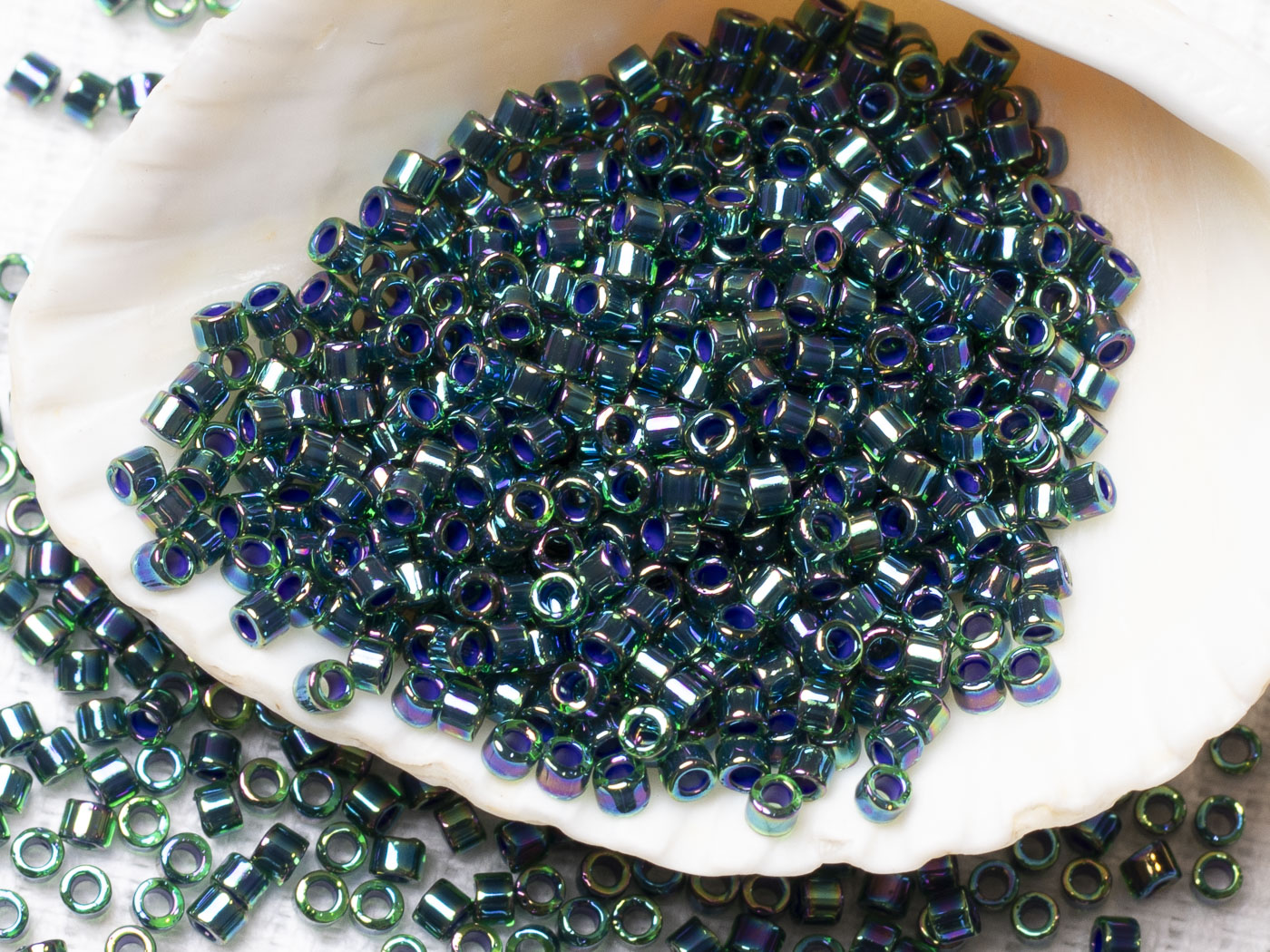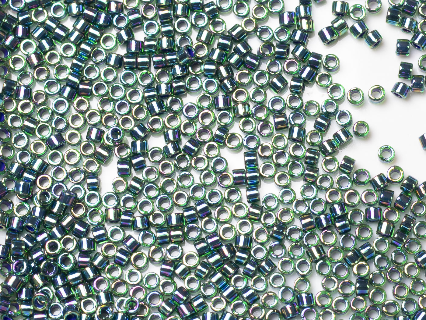 Бисер Япония MIYUKI Delica цилиндрический 11/0 5г DB-0276 изумрудный радужный с цветной линией