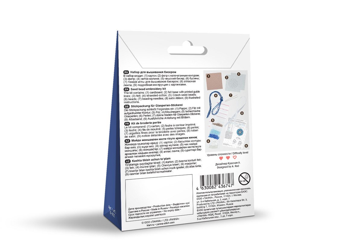 В набор для вышивания Klart входит: чешский бисер, фетр с напечатанным контуром, фетр, хлопчатобумажные нитки мулине Gamma, атласная лента, бусины, тонкая игла для вышивания бисером Gamma, картонная заготовка, подробная инструкция с цветными иллюстрациями. Сообщить о неточности в описании