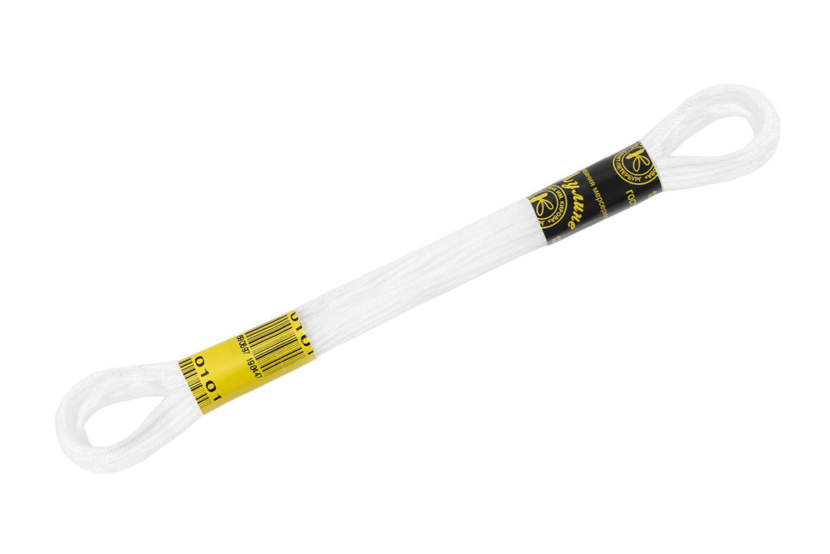 Нитки для вышивания "ПНК им. Кирова" мулине 100% мерсеризованный хлопок 8 м №0101 (001) БЕЛЫЙ